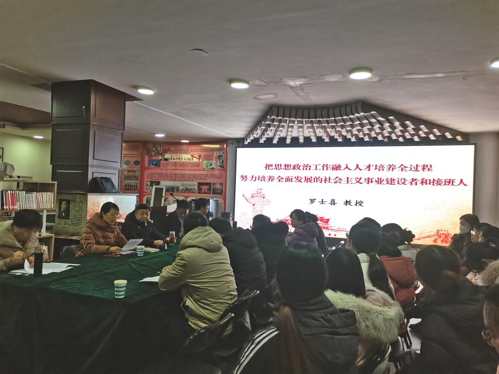 为了进一步提高思政课教师的综合素质,12月29日下午,马克思主义学院在国情国史体验馆举行报告会,邀请我校“百泉英才”领军人才、乡村振兴研究院院长、经济与管理学院院长罗士喜教授作题为《把思想政治工作融入人才培养全过程努力培养全面发展的社会主义事业建设者和接班人》的专题报告。学院班子成员、全体教职工参加报告会。会议由院党委书记吴玲玲主持。