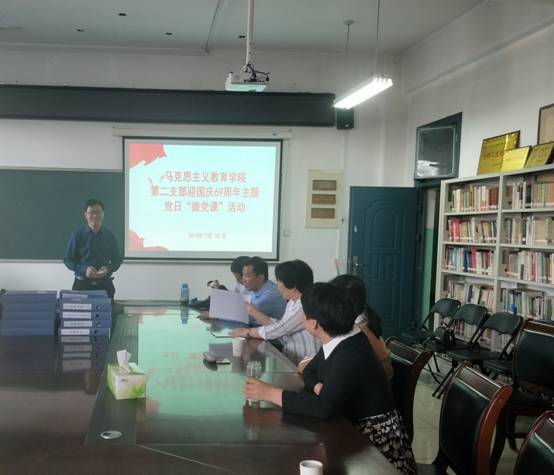 2018年9月28日,第二党支部在8号楼508教研室开展“迎国庆”主题党日活动,庆祝中华人民共和国成立69周年。党支部书记毕昱文主持了活动。