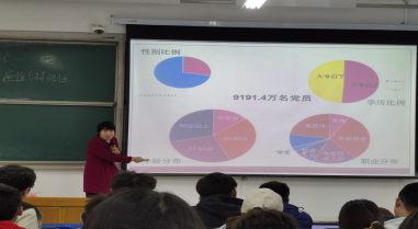 徐俊蕾首先从“质、量、度”三个基本概念解读了中国共产党的性质、现状和政治纪律性,接着以“量变、质变”分析了共产党由成立之初的50多人发展到今天9100多万党员的建设经验和规律,又以共产党领导的新民主主义革命、社会主义革命和建设、改革开放新时期和中国特色社会主义新时代我国社会巨变分析了“量变与质变的辩证关系”,最后勉励同学们要站在两个一百年交汇点上,努力增长本领,担当民族复兴的重任。