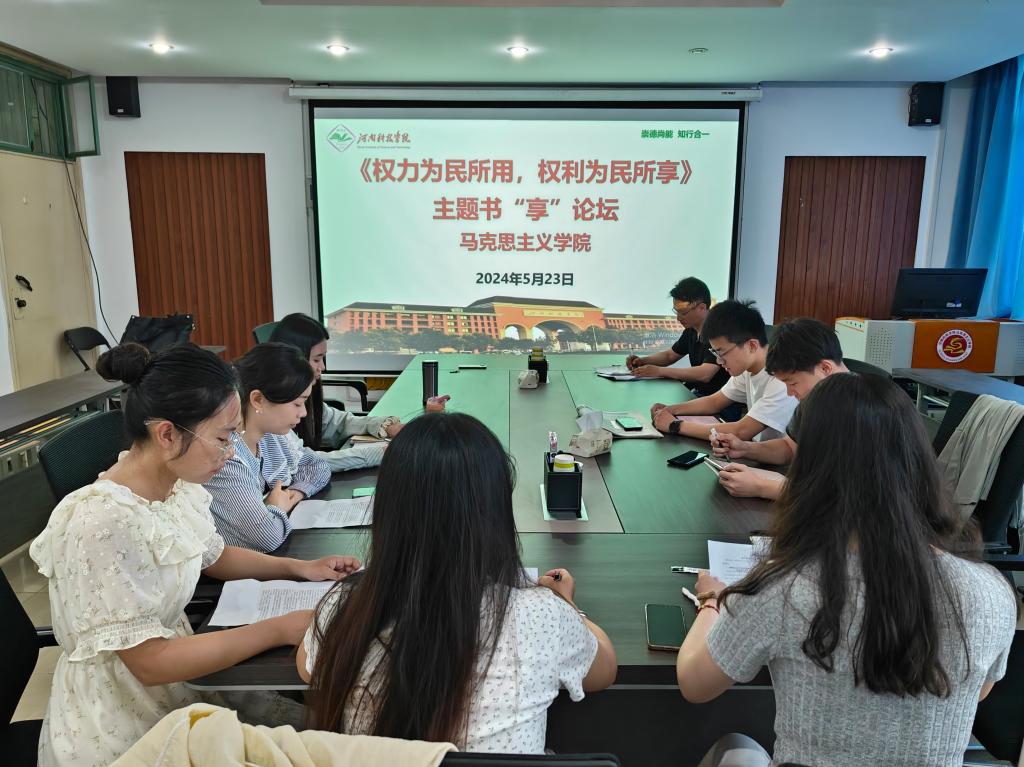 5月24日下午,马克思主义学院在0号楼804会议室举办“权力为民所用,权利为民所享——《政治学导论》阅读分享”主题书“享”论坛。本次论坛由23级研究生学习委员郭雪琪主持,硕士生导师尹璐担任论坛特邀嘉宾,23级全体全日制研究生参加论坛。