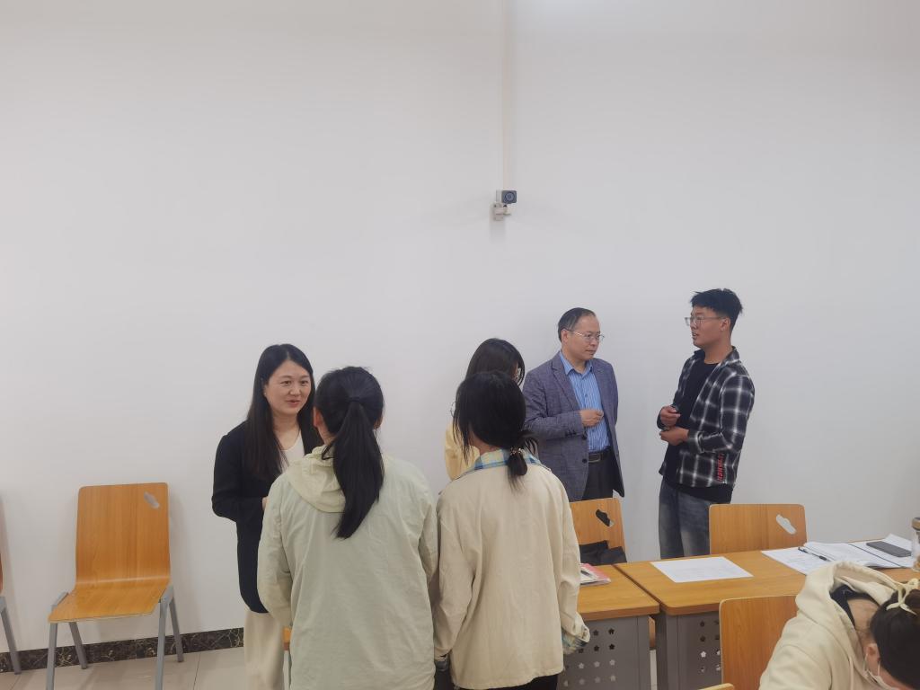 在听课环节,调研组一行深入课堂,随机听取了我院王威振老师讲授的《习近平新时代中国特色社会主义思想概论》和焦亚鹏老师讲授的《马克思主义基本原理》。调研组专家认真记录课堂情况,对两位老师的教学给予了充分肯定。随后,调研组随机抽取部分学生进行了交流和座谈。