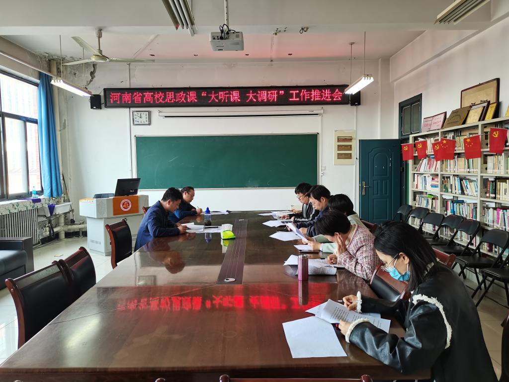 会议首先传达了《中共河南省委教育工委办公室 河南省教育厅办公室关于开展2023年度全省高校春季学期思政课“大听课 大调研”活动的通知》(教思政函〔2023〕86号)精神,并集中学习了《中共河南省委教育工委 河南省教育厅关于上好高校思政课的指导意见》(豫教工委〔2022〕123号)文件内容。同时,会议对“大听课 大调研”活动进行了详细的安排和部署,并对各门课程《教学要点及参考资料》的使用情况进行了讨论和交流。