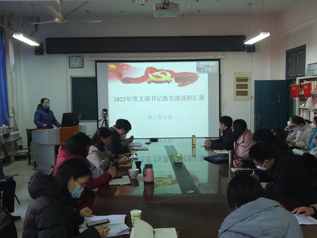 会上,四位党支部书记围绕学习贯彻习近平新时代中国特色社会主义思想和党的二十大精神情况、履行支部党建责任情况、推进基层党支部建设情况、开展基层党组织活动情况、党员发展、教育和管理情况等五个方面进行了述职汇报。各党支部全面总结了2022年度的成绩,并针对工作中存在的问题,认真分析原因,提出整改措施,细化目标任务,确定了下一步的党建工作计划。