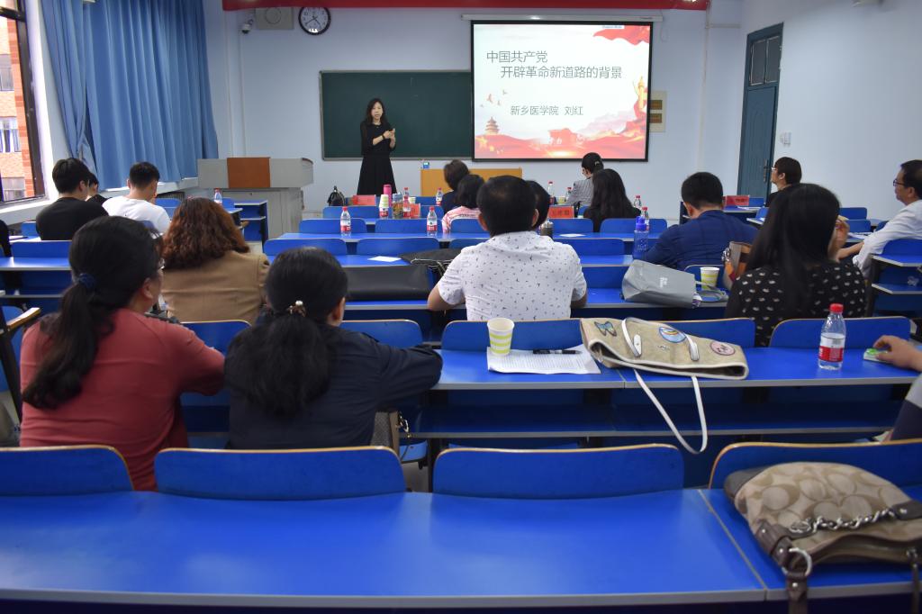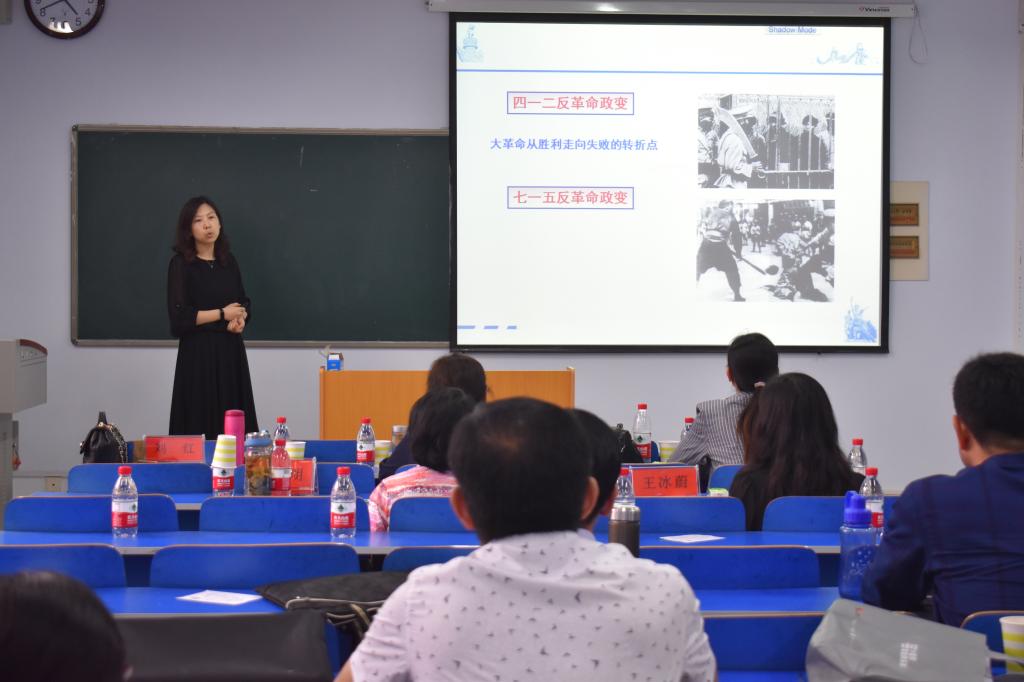 为贯彻习近平总书记在全国思政课教师座谈会上的精神,建设大学生真心喜爱、终身受益的思政课,马克思主义学院于2019年5月16日下午3点,在6号教学楼301举行了“金课论坛”展示观摩课,特别邀请省思政课教学技能竞赛特等奖获得者刘红担任主讲,由孙喜英副院长主持,学院全体教工均列席聆听。