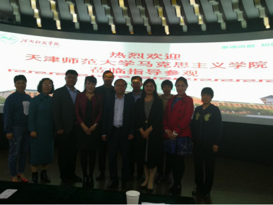 4月30日下午,天津师范大学马克思主义学院杨仁忠院长、党委书记李靖一行4人来我院进行思想政治理论课实践教学的交流考察。座谈会在马克思主义学院国情国史体验馆举行,会议有王冰蔚院长主持,毕昱文副院长和各教研室主任参加了会议。