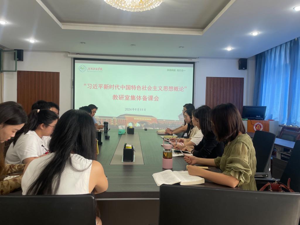 9月11日,为深入贯彻落实全国教育大会精神,推动党的二十届三中全会精神融入高校思政课教学,提升我校思政课教学质量,“习近平新时代中国特色社会主义思想概论”教研室在0号楼804会议室召开集体备课会,会议由教研室主任赵萌主持,学院副院长张希中及教研室全体专兼职教师参加。