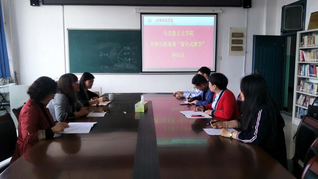 为深入贯彻落实习近平总书记在全国思想政治理论课教师座谈会上的讲话精神,全面提升我校思政课教学质量和水平,马克思主义学院形势与政策教研室于5月7日上午举办《形势与政策》课“混合式教学”研讨会,马克思主义学院领导和形势与政策课教研室专兼职教师参加了会议。
