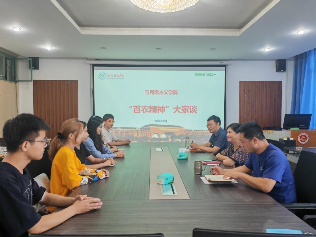 9月17日,马克思主义学院在0号楼804会议室举行“百农精神”大家谈活动。会议由院长王冰蔚主持,学院部分班子成员、研究生辅导员及2023级和2024级部分研究生参加了活动。