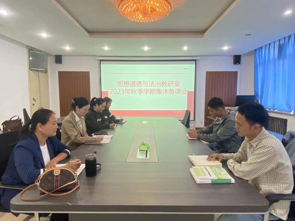 会上,韩静以《理想和现实的关系》为主题进行说课,与会教师分别从教学设计、教学内容、教学方法等方面提出建议。并就课程进度和侧重点以及现阶段教学开展情况进行深入交流。