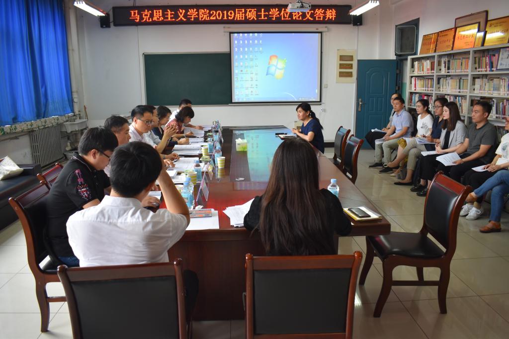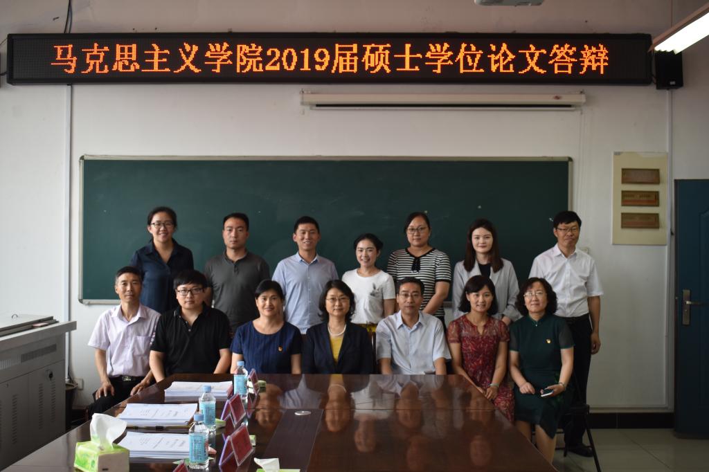 6月5日上午,马克思主义学院2019届硕士研究生学位论文答辩会在八号楼8508会议室举行。学院邀请了新乡医学院马克思主义学院院长戎华刚教授担任答辩委员会主席,我校副校长王霞教授、科技处副处长杨宾峰副教授、教育科学学院副院长李小丽副教授、马克思主义学院刘中元副教授,黄河科技学院副教授王鑫宏、河南师范大学附属中学高级讲师姜好敏担任答辩委员会委员。2019届六名硕士研究生参加答辩,学院研究生导师和2018级研究生到场观摩。