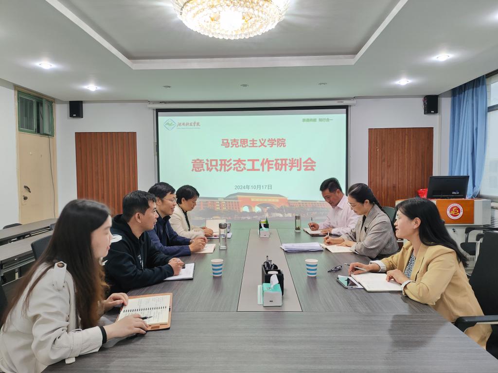 吴玲玲在总结发言中表示,马克思主义学院作为意识形态工作的前沿阵地,历来高度重视意识形态安全问题,牢固树立了“抓意识形态工作是本职,不抓是失职,抓不好是渎职”的理念,始终把意识形态和安全稳定工作放在重要位置,严格落实工作责任制。关于进一步加强和改进学院意识形态工作,她强调,一要放眼全局,准确把握学院意识形态工作新要求。风险研判要更细,风险防范要更早,力争把风险隐患发现和处置在萌芽状态。二要多措并举,扎实推进意识形态各项工作落实。加强舆情监督管理,引导师生传播正能量,筑牢意识形态工作防线,牢牢掌握意识形态工作话语权、主动权。三要压实责任,确保意识形态工作取得实效。定期开展师生思想健康动态和心理健康摸底调查,常态化开展意识形态风险隐患排查。