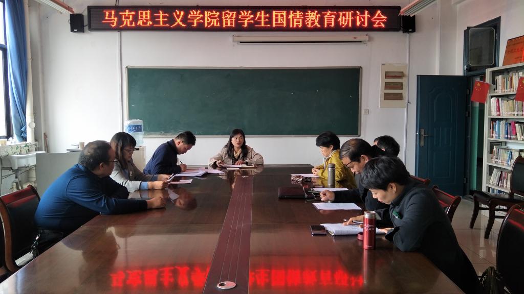 为了让我校的各国留学生更好地了解中国政治、经济、文化发展,讲好中国故事,传播中国好声音,马克思主义学院于2019年10月15日在学院会议室召开留学生中国国情教育专题设置研讨会,学院领导和教研室主任参加了会议。通过研讨,确定了授课人员与授课专题。