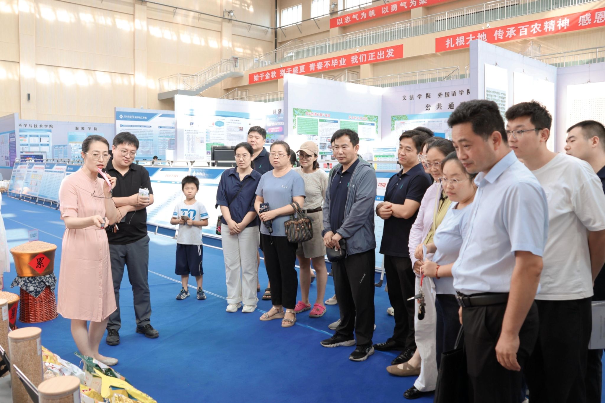 学院党委书记吴玲玲带领教师们详细了解各学院在教书育人、科研创新和服务社会等方面取得的成果。教师们认真观看展板及实物模型,全面了解学校近年来在立德树人根本任务指引下取得的成就,涵盖卓越农林人才培养、新工科建设、特色学科科研突破以及高水平应用型人才培养创新路径等方面。这些成果充分体现了我校贯彻党的教育方针、践行百农精神、服务地方发展的成效。