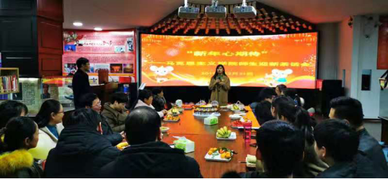 学生代表周忠泽代表研究生向老师们汇报了一个学期以来的学习生活情况,并向老师们表达了新年祝福。