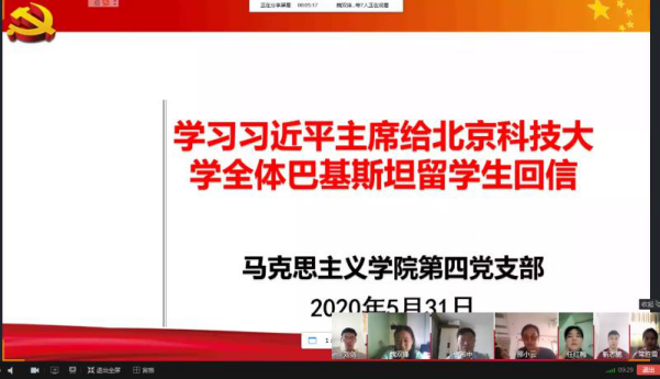 5月31日,马克思主义学院第四党支部在QQ群召开支部党员视频会议,组织学习习近平总书记给北京科技大学全体巴基斯坦留学生重要回信精神。会议由支部书记张希中主持,支部全体党员参加会议。
