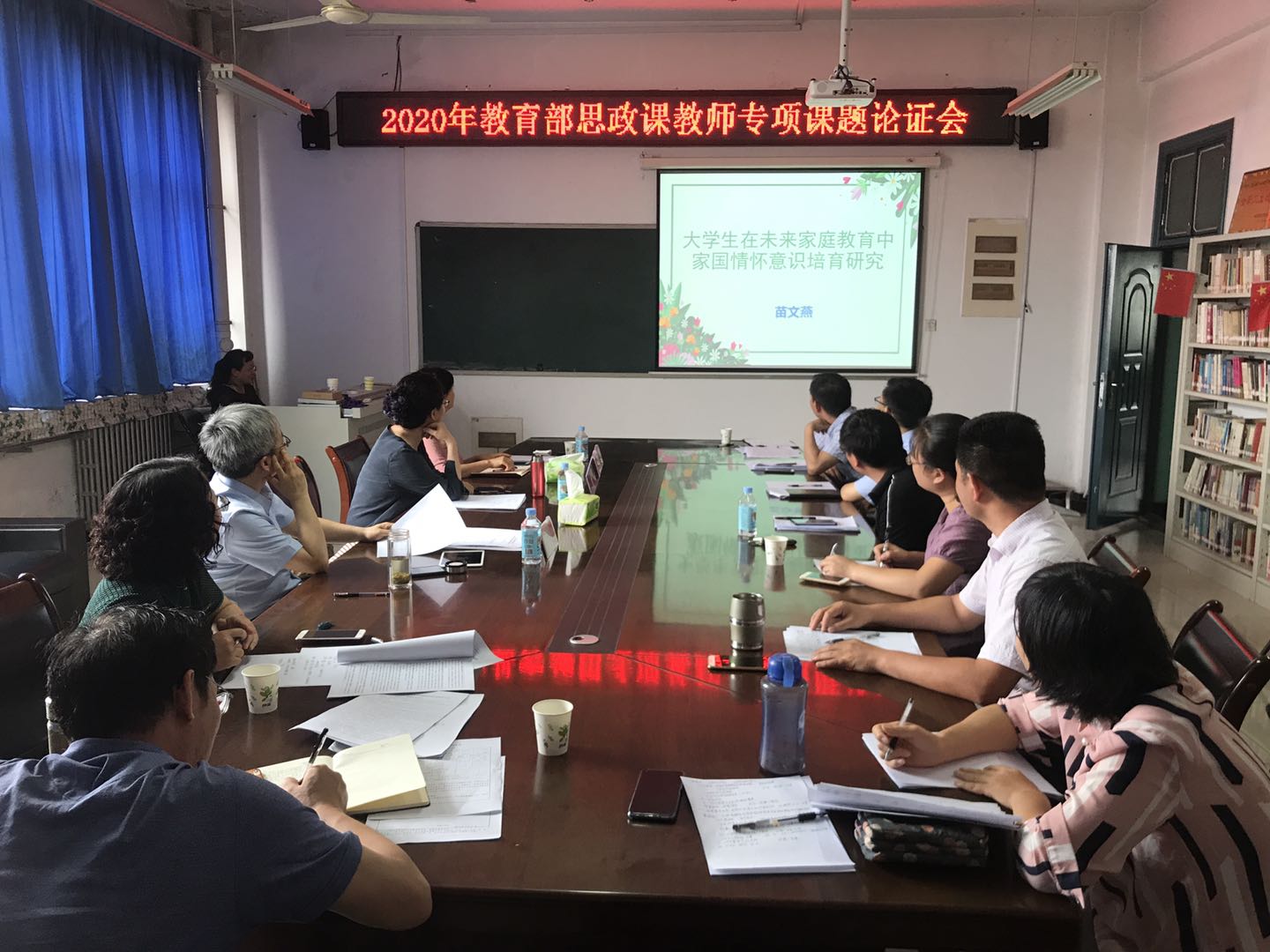 7月4日上午,马克思主义学院在本院会议室召开国家社科基金思政专项课题和教育部思政课教师专项项目论证会。河南师范大学社科处处长刘怀光教授、校教育科学学院宋飞琼教授作为评议专家应邀参会。会议由院长王冰蔚教授主持,副院长毕昱文副教授及学院全体教师旁听学习。
