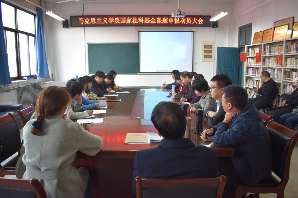 为进一步提高学院教师申报国家社科基金项目的积极性,提升立项成功率,10月21日下午,马克思主义学院召开了国家社科基金项目申报动员会。院长王冰蔚主持会议,全体教师参加本次会议。