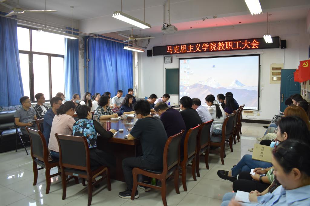 9月28日下午,马克思主义学院在8号教学楼508会议室召开教职工大会,听取并审议了《马克思主义学院“十四五”事业发展规划》。学院班子成员和全体教职工参加了会议,会议由学院副院长、分工会主席刘中元主持。