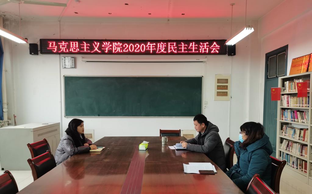 根据校党委组织部《关于认真开好2020年度处级以上党员领导干部民主生活的通知》文件精神,1月15日上午,马克思主义学院在508会议室召开2020年度处级领导班子民主生活会。学院班子成员王冰蔚、孙喜英、刘中元参加会议。会议由学院院长兼党总支副书记王冰蔚主持。