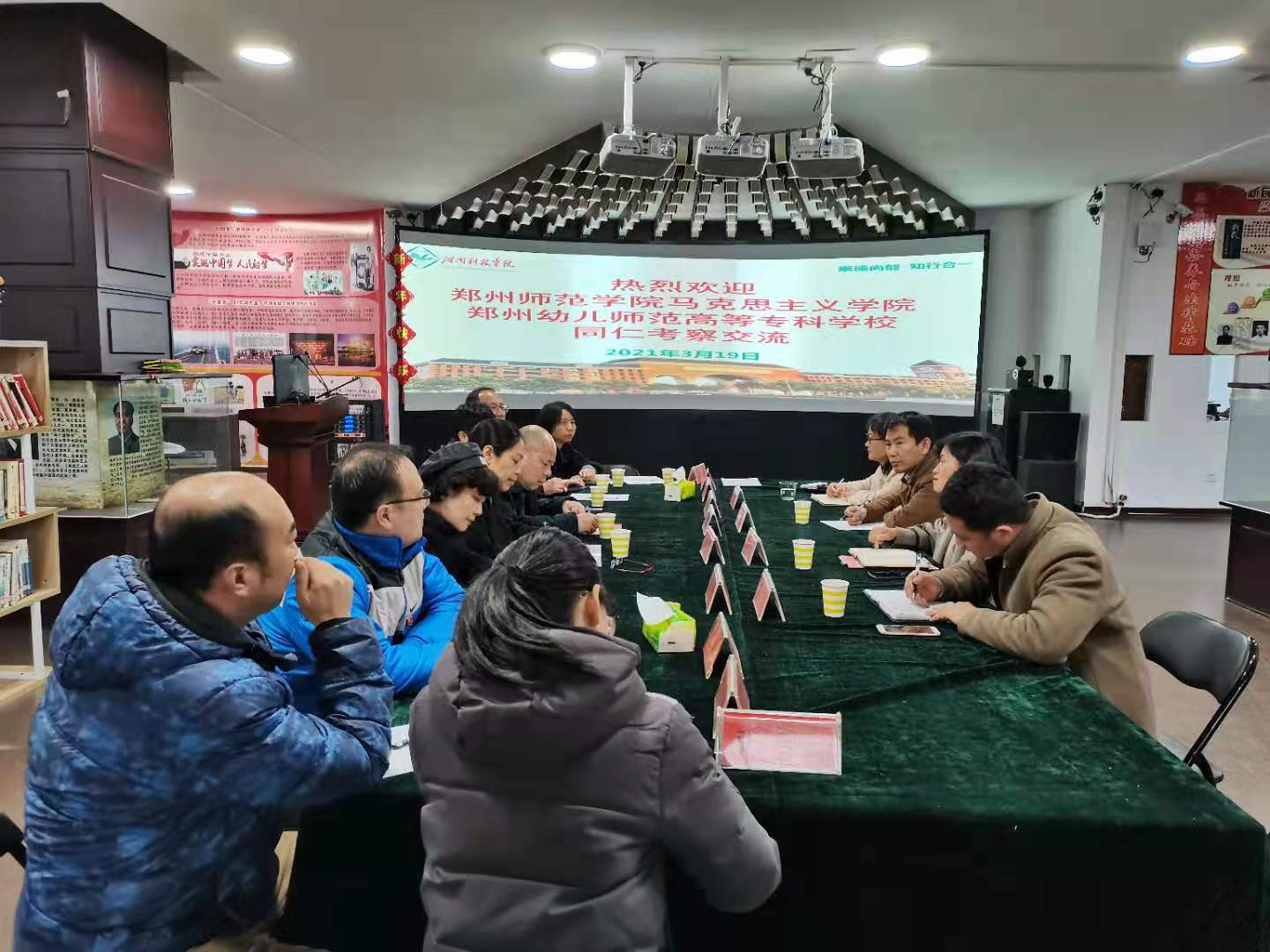 3月19日下午,郑州师范学院马克思主义学院院长林志强与郑州幼儿师范高等专科学校思政教学部主任梁彩霞等一行10人来到我院思想政治教育体验中心,考察交流思想政治教育虚拟仿真实验教学、思想政治教育课实践教学模式和平台建设、运营等情况。我院院长王冰蔚、主管教学的副院长刘中元、办公室主任黄瑞新、思想政治体验中心主任魏双锋参加了考察交流。