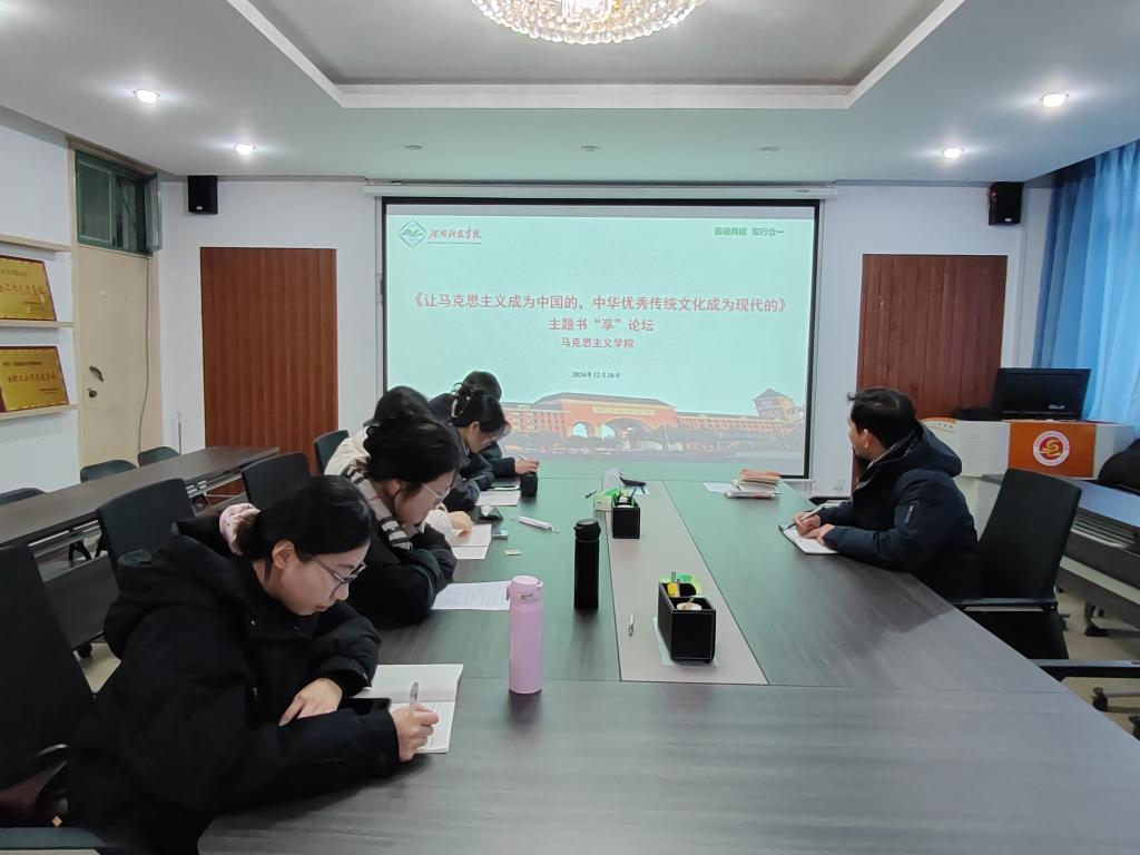 12月26日下午,马克思主义学院在0号楼804会议室举办第三期书“享”论坛。论坛以分享《大道相通:马克思主义与中华优秀传统文化》读书心得为主题。研究生导师黄瑞新担任特邀嘉宾,2024级全体全日制研究生参加论坛。