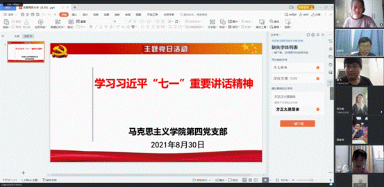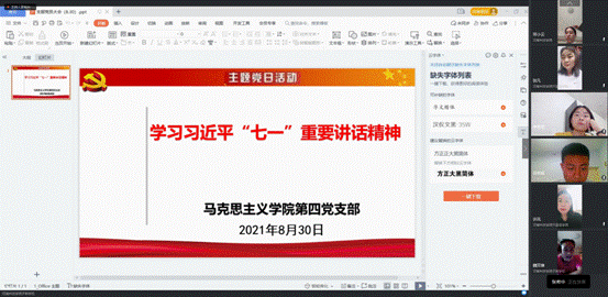 为落实省委高校工委、省教育厅关于上好2021年秋季开学第一课有关精神,按照学院党总支的工作部署,8月30日,马克思主义学院研究生党支部线上召开主题党日暨开学第一课活动。支部书记张希中主持活动,辅导员魏双峰及全体学生党员参加活动。