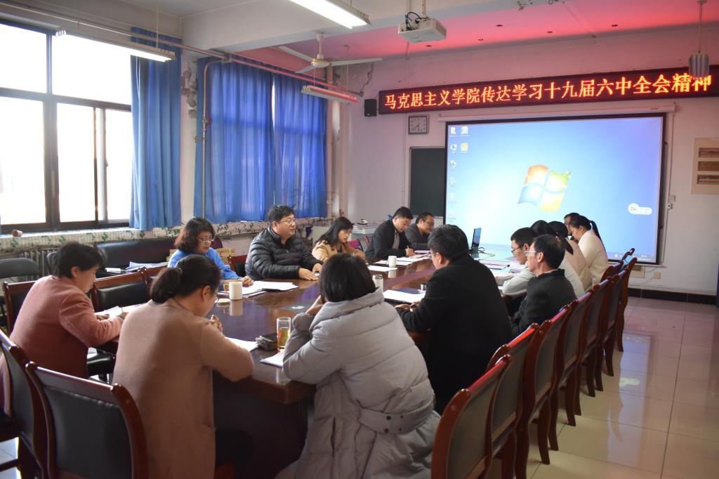 会议强调,学习好、宣传好、贯彻好全会精神是学院当前和今后一个时期的重要政治任务。全体教师要第一时间领悟六中全会的核心要义,推动全会精神往深里走、往实里走、往心里走,并且要第一时间将全会精神融入到课堂教学中,贯彻好思政课是落实立德树人根本任务的关键课程作用,传播好的党的思想,引导广大青年学生坚定不移跟党走。