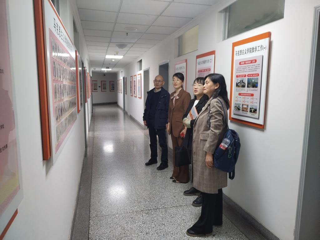 在甘肃农业大学马克思主义学院,侯庆丰院长详细介绍了学院的办学特色、发展成效,分享了高校思想政治理论课“多元菜单式”实践教学的构建与实施,尤其是“道德小品展演”“红色文化双进”“微电影拍摄”方面的先进做法。我院吴玲玲、王冰蔚介绍了学校办学历史与特色、学院师资队伍建设、国情国史体验馆建设等方面的情况。随后,参观了该校校史馆、人类农业时光隧道等。