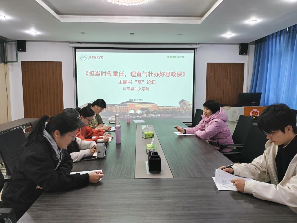 3月27日下午,马克思主义学院在0号楼804会议室举办《理直气壮开好思政课——把握新时代思政课建设规律》主题研究生书“享”论坛。本期论坛由研究生导师、马克思主义基本原理教研室主任徐俊蕾担任特邀嘉宾,2024级全体全日制研究生参加论坛。
