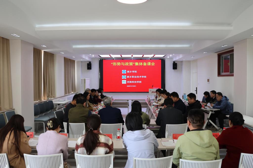 为进一步贯彻落实习近平总书记对思政课建设的重要指示精神,持续提升高校思政课教师教育教学水平,3月20日下午,我校与新乡学院、新乡职业技术学院联合举办“形势与政策”课集体备课会。