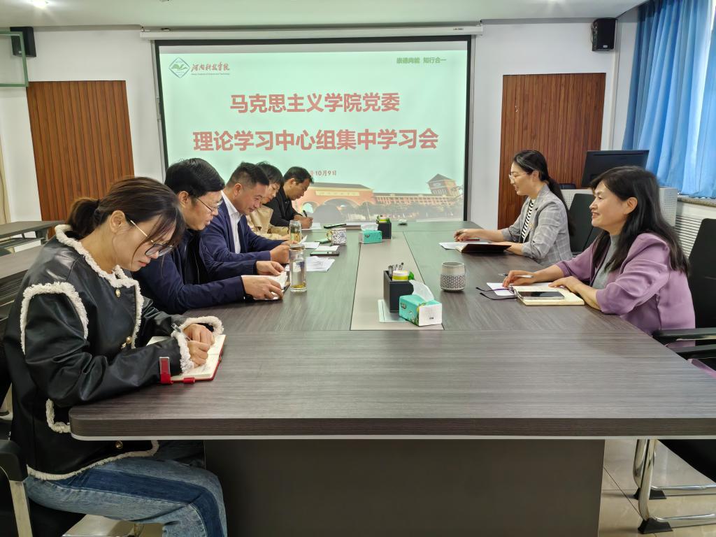 10月9日上午,马克思主义学院党委在0#综合楼804会议室召开了理论学习中心组集中学习会,专题学习习近平总书记在全国教育大会上的讲话精神,全体党委委员参加会议。会议由学院党委书记吴玲玲主持。