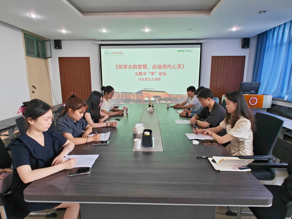 6月17日下午,马克思主义学院在0号楼804会议室举办“探索古韵智慧,启迪现代心灵——《中国哲学简史》阅读分享”主题书“享”论坛。本次论坛由23级研究生学习委员郭雪琪主持,硕士生导师徐俊蕾副教授担任论坛特邀嘉宾,23级全体全日制研究生参加论坛。
