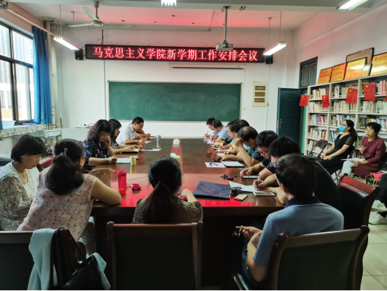 9月2日下午,马克思主义学院在508会议室召开了新学期工作安排会议。会议由王冰蔚院长主持,学院全体教工参加了会议。