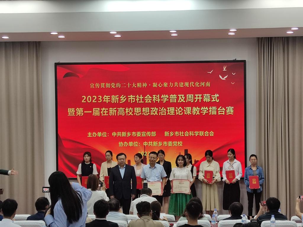 9月22日,新乡市社会科学普及周开幕式暨第一届在新高校思想政治理论课教学擂台赛在市委党校举行。本次会议邀请了市委常委、宣传部部长杨彦玲,市委宣传部副部长陈伟,市妇联党组书记、主席朱丽珍,市委党校党委书记、常务副校长孟昕,市委党校副校长吉红,市社科联党组书记、主席王力,团市委副书记贾紫亮等领导出席。在新12所高校教师、学生及市委党校思政课教师180余人参加活动。