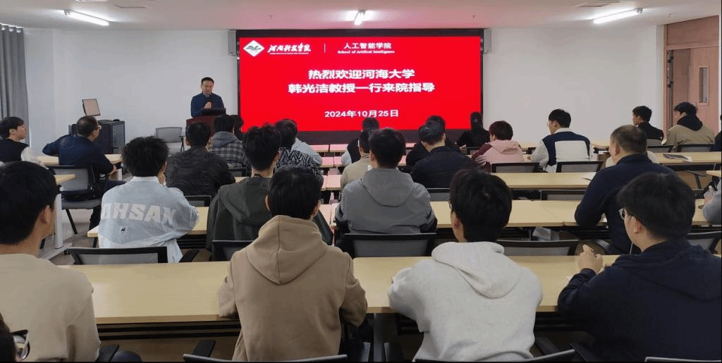 10月25日下午,河海大学信息科学与工程学院院长韩光洁教授应邀来我院进行学术交流。韩光洁首先参观了人工智能学院智能机器人研发平台,详细了解了学院近年来在农业机器人、特种机器人和两用机器人等高端智能装备研发方面取得的成果。