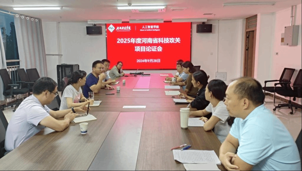 为积极响应学校关于2025年度河南省科技攻关项目申报工作的部署,切实提升我院省级课题申报水平,9月28日下午,人工智能学院在弘德楼A205会议室召开了省科技攻关项目论证会。学院党委书记叶晖、院长蔡磊、副书记申冲、副院长徐涛及全体项目申报教师参加了会议。论证会由徐涛主持。