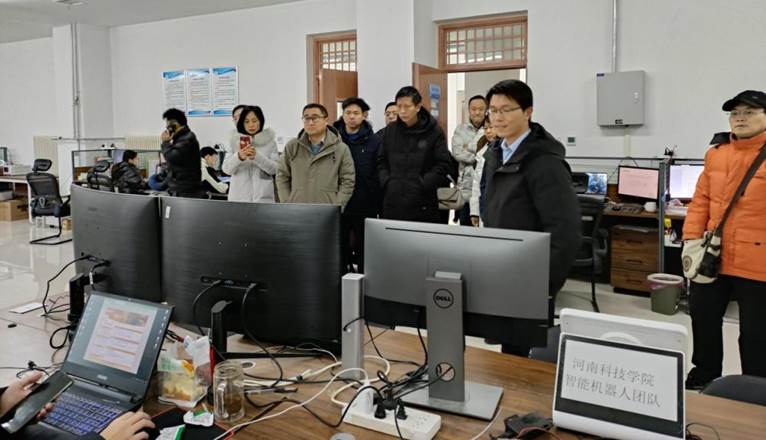 会前,各企业负责人参观了学院原创性智能机器人研发流程及科研中试线。