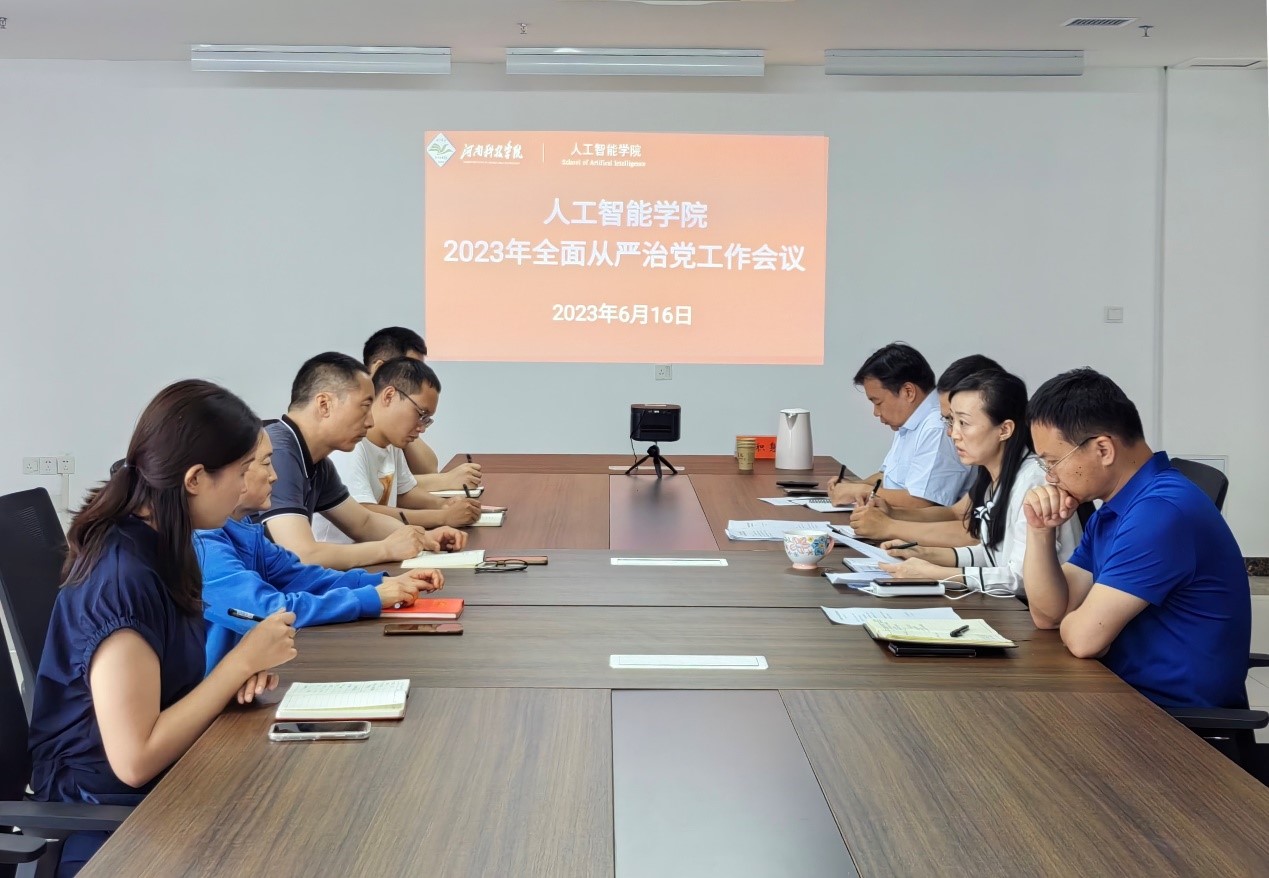 6月16日下午,人工智能学院在弘德楼205会议室召开2023年全面从严治党工作会议,学院全体党员参加会议。