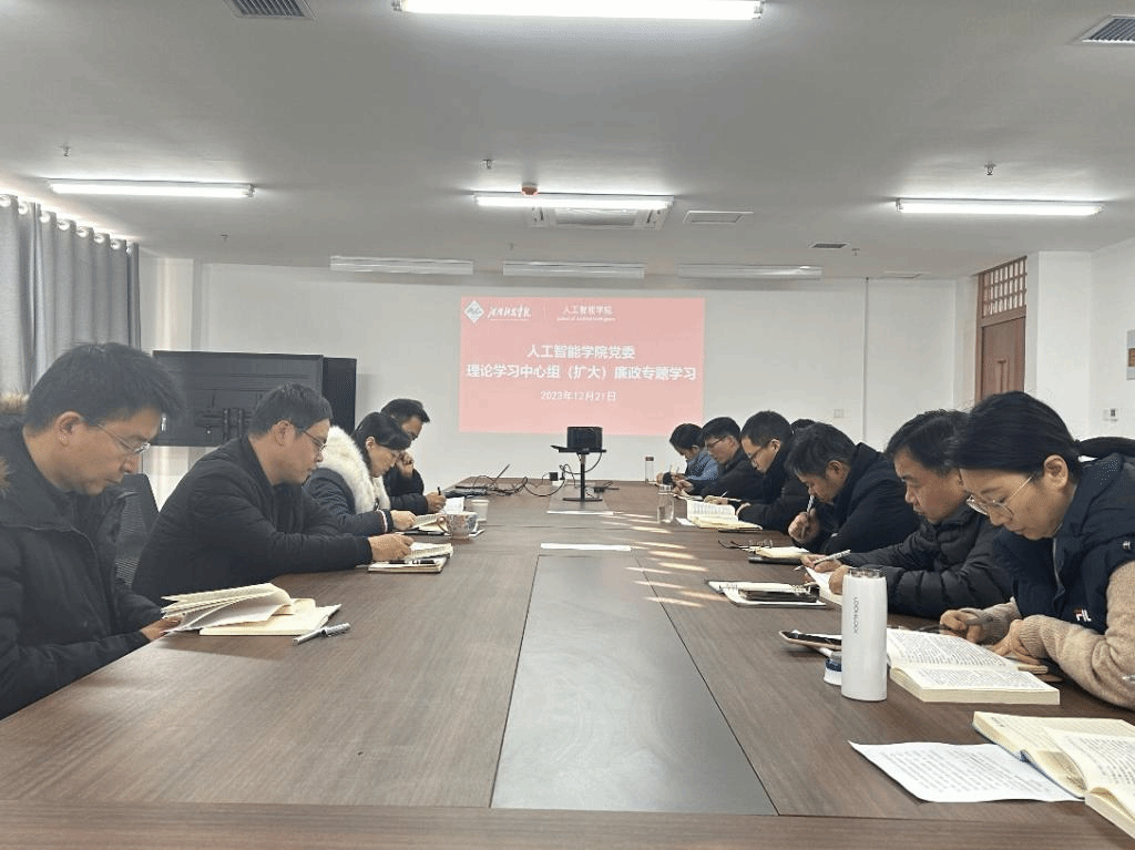 为进一步加强党风廉政建设,增强廉洁自律意识,筑牢反腐倡廉底线,12月21日下午,人工智能学院党委在弘德楼A205会议室召开党委理论学习中心组(扩大)廉政专题学习会,学院全体教师参加学习。