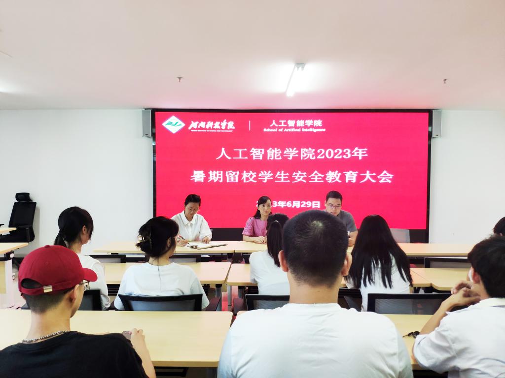 为进一步做好暑期留校学生管理工作,6月29日下午,人工智能学院在弘德楼B310会议室召开2023年暑期留校学生安全教育大会。院党委书记叶晖、党委副书记申冲、团委书记郭小月、兼职辅导员鲁银圆及暑期留校全体学生参加会议。会议由郭小月主持。
