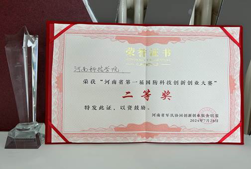 7月16日,由河南省军民协同创新创业服务联盟主办的河南省第一届国防科技创新创业大赛在鹤壁市顺利闭幕,我校为唯一的高校单位参加此次比赛。经过激烈角逐,智能机器人研发团队赵含等3位同学荣获二等奖。本次大赛主题为“国防有我,创新强国”,目的在于进一步推动河南省军民科技协同创新发展,激发省内企业国防科技创新创业热情,为国家和我省推荐有重要价值的新技术新成果。