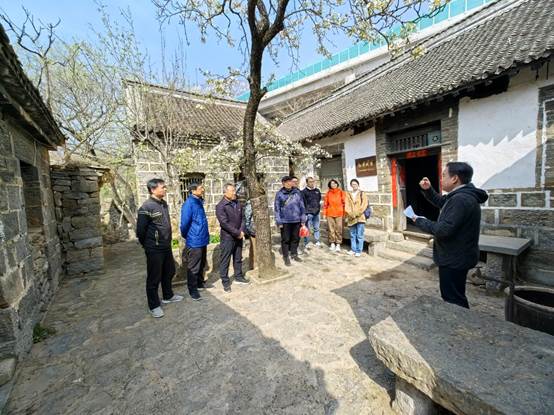 在卫辉市狮豹头乡,全体党员参观了青年洞,王秀金同志现场讲解了国家“改革先锋”“最美奋斗者”吴金印在狮豹头乡的造地起源,号召同志们学习“太行公仆精神”;随后,大家到小店河村抗日民主政府旧址现场感受了昔日抗日民主政府在艰苦的条件下开展武装斗争的过程;在罗圈村杨贵故居,孔德川同志向大家介绍了杨贵同志幼年积极投身革命、带领林县人民劈山引水修建红旗渠等光荣事迹。