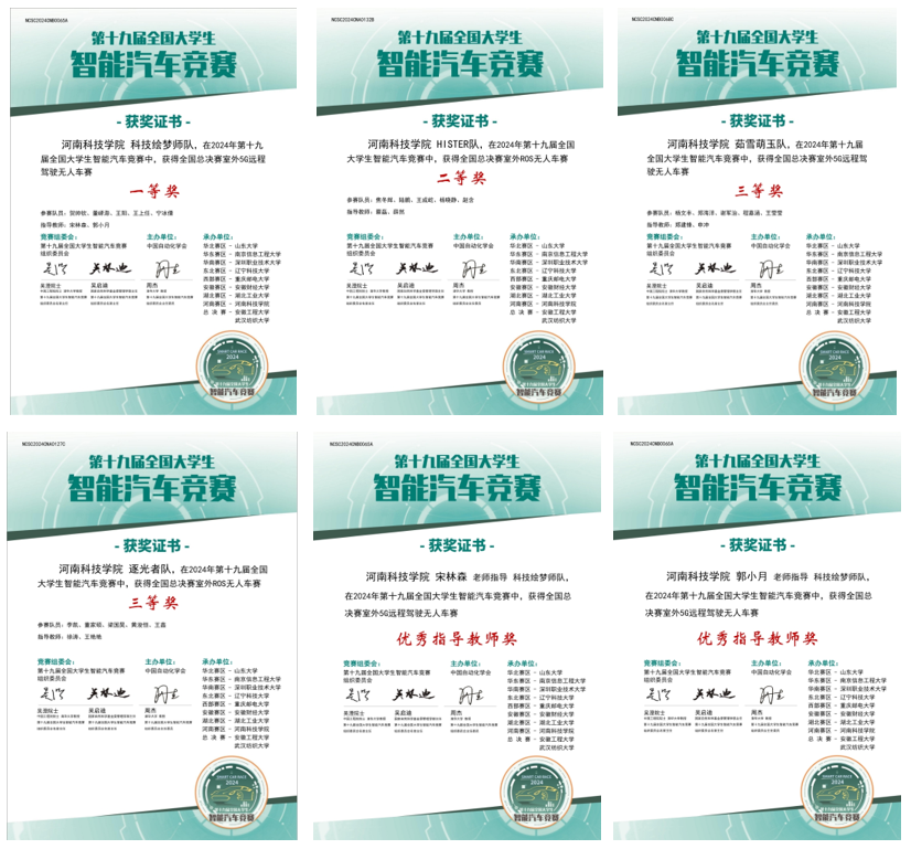 近日,第十九届全国大学生智能汽车竞赛室外赛总决赛在安徽工程大学圆满落幕。经过激烈角逐,人工智能学院学子面对与全国高水平院校同场竞技的高难度挑战,参赛团队展现强劲实力,共获国家级一等奖1项、二等奖1项、三等奖2项,创历史最好成绩,学院教师宋林森、郭小月获优秀指导教师奖。