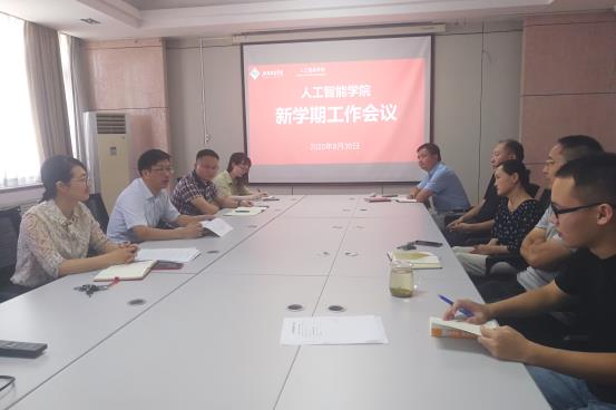 8月30日上午,人工智能学院在803学院会议室召开全院大会,部署新学期工作。学院党总支书记吴玲玲、院长古乐声、副院长蔡磊及全体教师参加了会议,会议由院长古乐声主持。