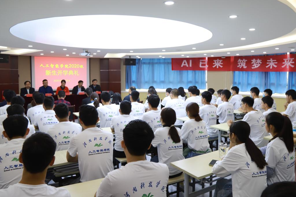 10月10日上午,人工智能学院在实验楼A段三楼会议室举行2020级新生开学典礼。学院党总支书记吴玲玲、院长古乐声、副院长蔡磊、全体教职工,以及2020级全体本科生参加了典礼。