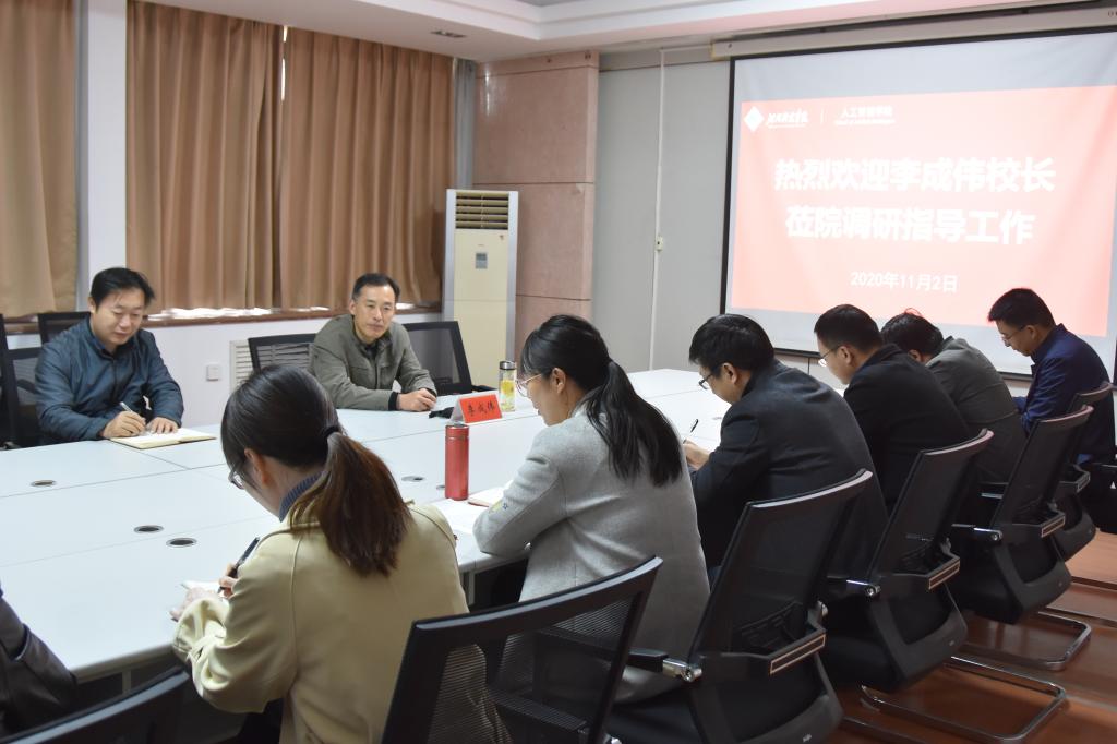 11月2日下午,校长李成伟来到电教综合楼7楼人工智能学院,看望学院教师,调研指导人工智能学院工作。校办副主任孙震寰陪同调研。