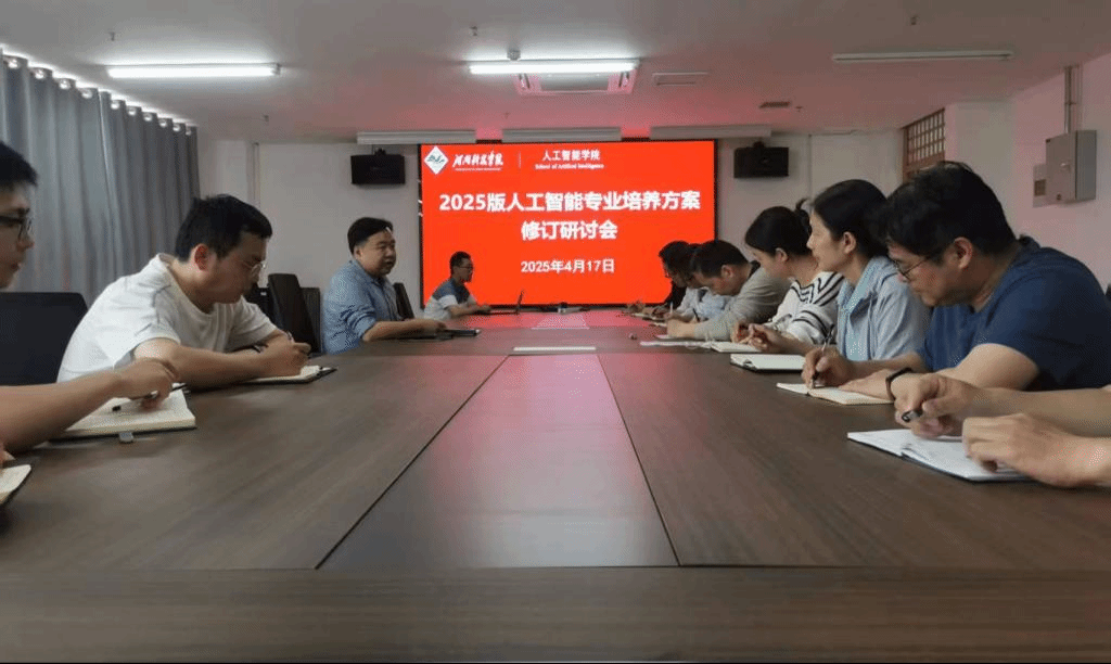 4月17日下午,人工智能学院在弘德楼A205召开2025版人工智能专业培养方案修订研讨论证会。学院全体教师汇聚一堂,以“学生中心、产出导向、持续改进”为核心,展开深度研讨与方案优化论证工作,会议由副院长孔德川主持。
