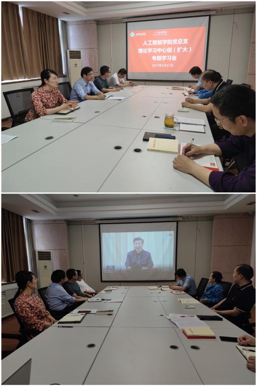 5月21日下午,人工智能学院党总支在803会议室召开理论学习中心组(扩大)学习会,专题学习习近平总书记在南阳考察调研时的重要讲话精神,学院党政班子成员及全院教师参加学习。会议由学院党总支书记吴玲玲主持。