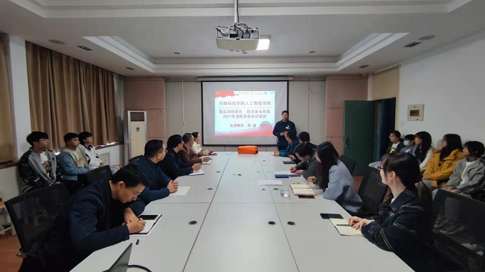 为进一步加强学院消防安全宣传教育工作,促进全院师生关注消防、学习消防,人工智能学院联合校保卫处于11月4日下午邀请河南省消防协会教员张迪在电教综合楼803会议室以《落实消防责任,防范安全风险》为题,举行了消防安全知识培训会。学院院长古乐声、党总支副书记王秀金、副院长蔡磊、全院教师及学生代表等30余人参加了培训。