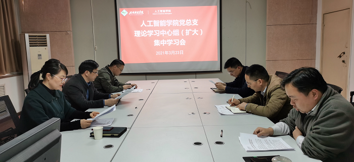 3月23日下午,人工智能学院党总支在电教综合楼803会议室召开学院理论学习中心组(扩大)集中学习会,专题学习党史学习教育相关内容。学院党总支书记吴玲玲、院长古乐声、副院长蔡磊、党总支委员及相关科级干部参加了会议。会议由学院党总支书记吴玲玲主持。